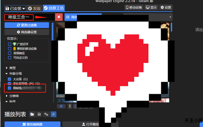 游戏视频可以wallpaper搜索:神级三合一(需开启红框内选项)